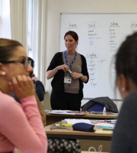 Lady teaching ladies snap from: https://www.flickr.com/photos/liverpoolschoolofenglish/10211219575 (last accessed 6 Oct 23).
