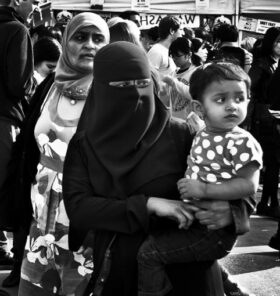 The photo of the head/facial coverings typical of UK women from an Islamic background is aptly titled ‘Baghdad, Kabul, Brixton?’. https://www.flickr.com/photos/neilmoralee/8188745590 (last accessed 6 Oct 23).
